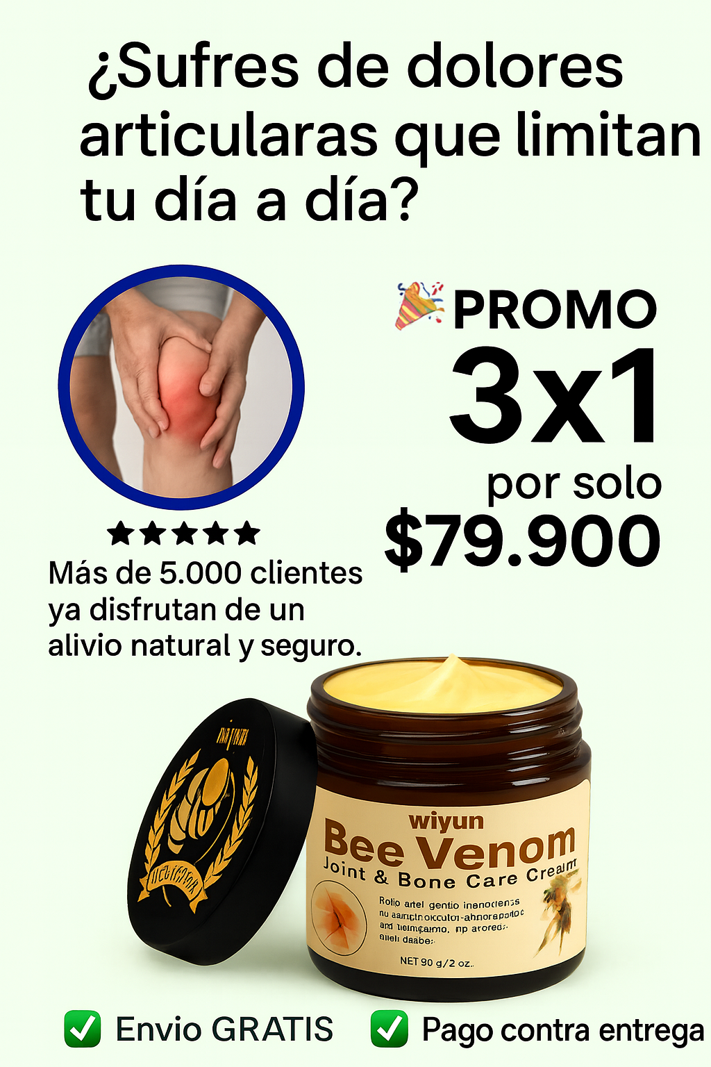 "Tenía dolor constante en mis rodillas y desde que uso la crema con veneno de abeja, puedo caminar sin molestias. ¡Funciona de verdad!"